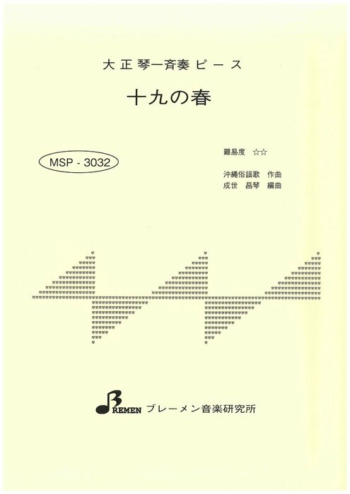楽譜 MSP-3032 十九の春(田端義夫)(大正琴・一斉奏ピース/中級/演奏時間:4:02)