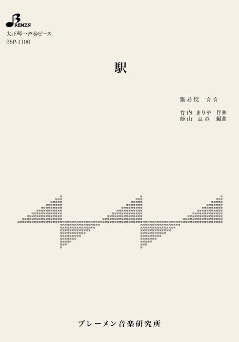 楽譜 BSP-1106 駅/竹内 まりや(大正琴・一斉奏ピース/中級/演奏時間:5:13)