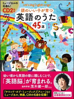 楽しい英語の歌(ミュージカルの有名曲や海外の童謡など)を45曲収録したCD2枚がついた子ども向けの絵本。発音の良いリズミカルな英語の歌を日常的に聴くことで、英語に自然と親しみ「聴く力」や「外国語への好奇心」が養われます。