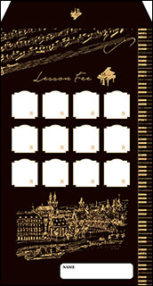 アンティーク風の楽譜やヨーロッパの風景柄など、シックで大人向けのデザインです。お求めやすい価格のオリジナル月謝袋です。