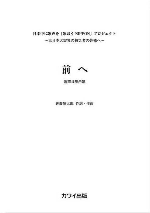 楽譜 佐藤賢太郎/前へ(混声4部合唱)(日本中に歌声を「歌おうNIPPON」プロジェクト〜東日本大震災の被災者の皆様へ〜)