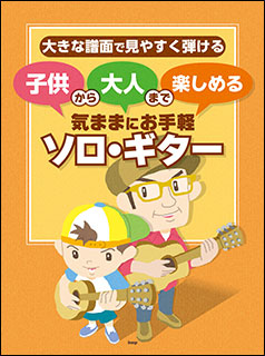 譜面とタブ譜が大きいので、わかりやすく見やすい、子供から大人まで楽しめるギター・ソロ曲集。いろんなジャンルの曲を収載。