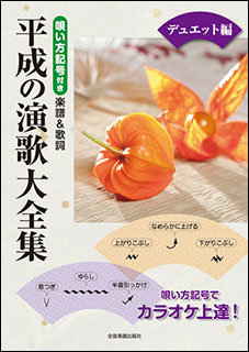 ☆一口メモ☆: 月刊「明日のヒットメロディー」巻末コーナーでおなじみ!「こぶし」「引っかけ」「ビブラート」「息つぎ」などがひと目で分かる、全曲唄い方記号付きの楽譜と歌詞組でカラオケの練習に最適な曲集です。