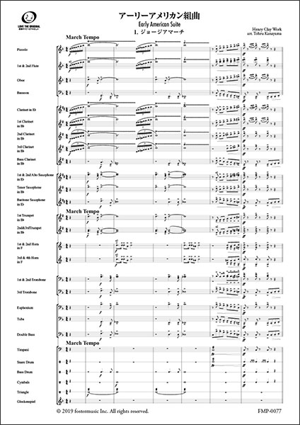 楽譜 金山徹(編曲)/アーリーアメリカン組曲【吹奏楽スコア】(FMP-0077FS/302-08438/小編成/G.3/T:03:52)