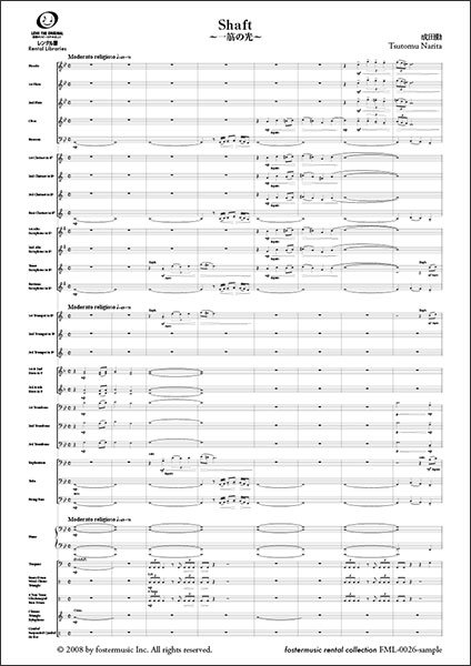 楽譜 成田勤/Shaft〜一筋の光【吹奏楽スコア】(FML-0026FS/302-08591/中編成/G.3/T:08:57)