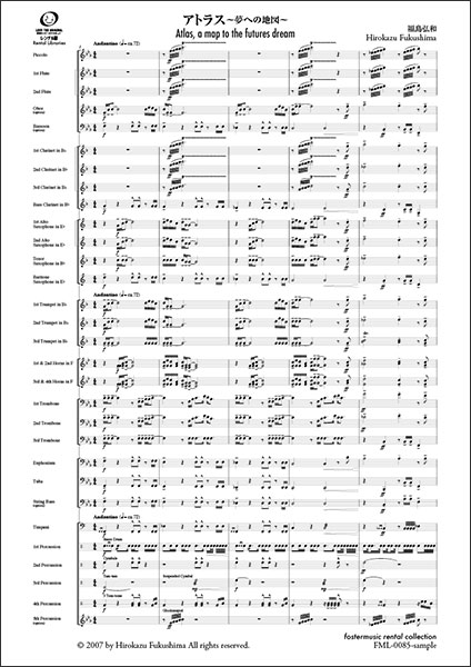 楽譜 福島弘和/アトラス〜夢への地図〜【吹奏楽スコア】(FML-0085FS/302-08600/中編成/G.3/T:07:00)