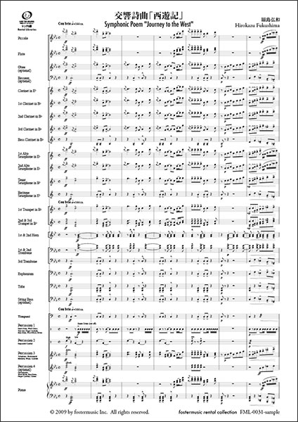楽譜 福島弘和/交響詩曲「西遊記」【吹奏楽スコア】(FML-0031FS/302-08598/中編成/G.3/T:06:50)