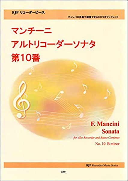 楽譜 マンチーニ/アルトリコーダーソナタ 第10番(模範演奏・マイナスワンCD付)(リコーダーピース)