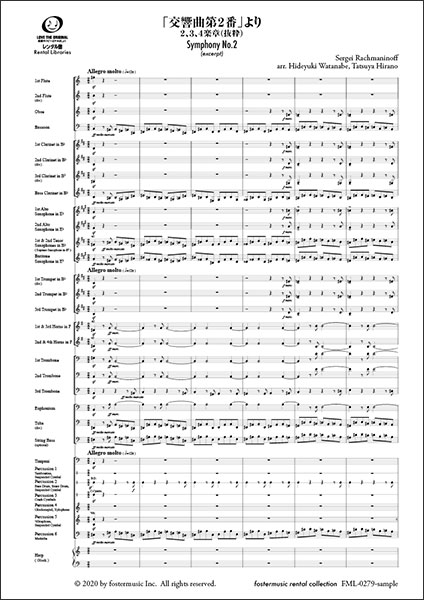 楽譜 セルゲイ・ラフマニノフ/「交響曲 第2番」より 2、3、4楽章(抜粋) 【吹奏楽スコア】(FML-0279FS/302-08660/中編成/G./T:07:45)
