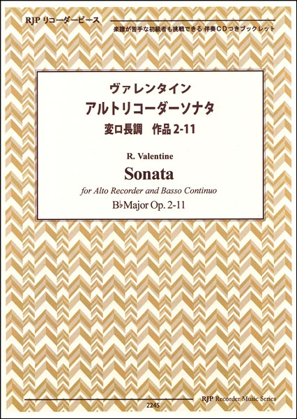 楽譜 ヴァレンタイン/アルトリコーダーソナタ 変ロ長調 作品2-11(模範演奏・マイナスワンCD付)(2245/リコーダーピース)