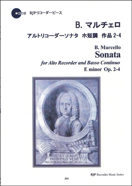 楽譜 B. マルチェロ/アルトリコーダーソナタ ホ短調 作品2-4(模範演奏・マイナスワンCD付)(2051/リコーダーピース)