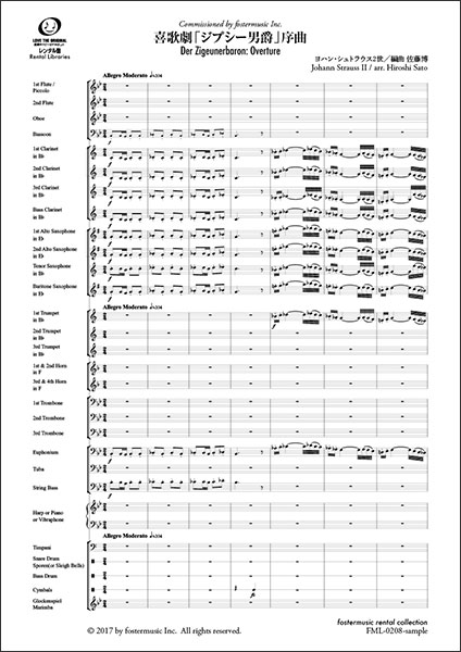 楽譜 ヨハン・シュトラウス2世/喜歌劇「ジプシー男爵」序曲【吹奏楽スコア】(FML-0208FS/302-08670/中編成/G.4/T:07:36)