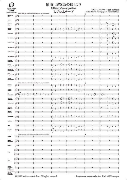 楽譜 モデスト・ムソルグスキー/組曲「展覧会の絵」より【吹奏楽スコア】(FML-0036FS/302-08755/大編成/G.5/T:11:00)