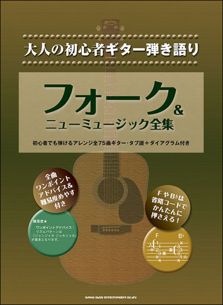 本書は大人の初心者が嗜むアイテムとして好評を得ています、フォークの弾き語り曲集のアップグレード版です。かんたんギター弾き語り講座、ワン・ポイント・アドバイス付きでので、青春時代に一度は耳にしたあの曲、この曲がすぐに演奏できます。