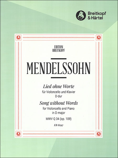 楽譜 メンデルスゾーン/無言歌 ニ長調 作品109 【Cello&Piano】(【1879542】/EB 8297/BRKEB8297/チェロ&ピアノ/輸入楽譜(T))