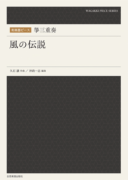 『風の谷のナウシカ』の挿入曲・久石 譲作曲の「風の伝説」が箏2面と17絃箏による三重奏になりました。編曲者は各種メディアで活躍中の、ゲーム音楽を和楽器で演奏する集団『ファミ箏』 を率いる沖政一志。イベント演奏などで映える編曲が魅力の箏三重奏です。