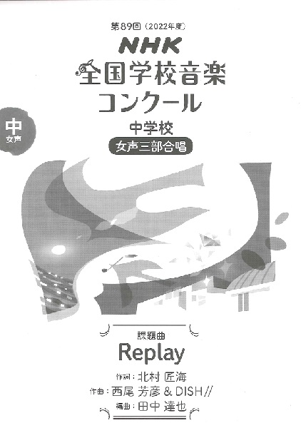 楽譜 中学校女声三部合唱/Replay(0055417/2022年度第89回NHK全国学校音楽コンクール課題曲)