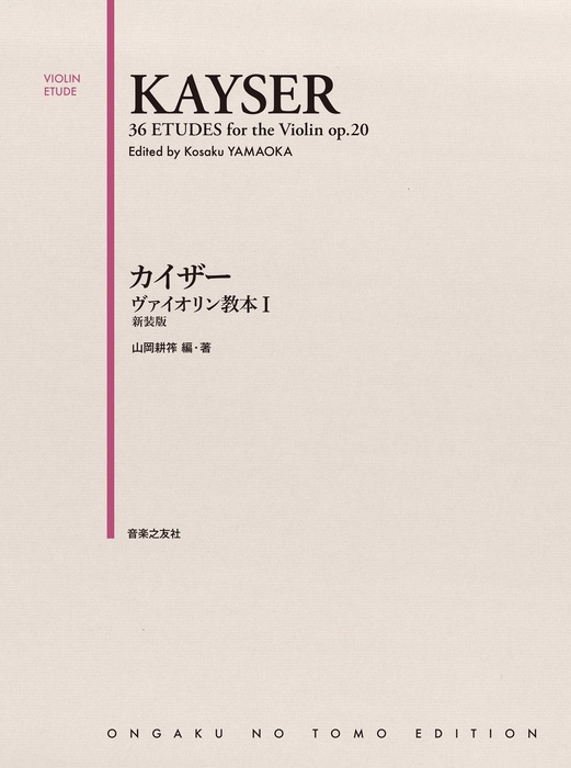 「ヴァイオリン学習者が最初に取り組むエチュード」として学習者必携の王道教材であるカイザー教本。1992〜93年にかけて山岡耕筰編纂のもと刊行されたが、その後手に入らない状況が続いた。しかし多くの要望の声を受け、このたび満を持して復刊。他では手に入らないピアノ伴奏譜に対応している。「ヴァイオリン学習者が最初に取り組むエチュード」として学習者必携の王道教材であるカイザー教本。92〜93年にかけて山岡耕筰編纂のもと刊行されたが、その後絶版。しかし多くの要望の声を受け、復刊となった。最大のポイントは、他では手に入らない伴奏譜(第2ヴァイオリン/ピアノ)の存在。第2ヴァイオリンで先生とデュオ、またピアノがあればピアノ伴奏でさらに充実したアンサンブルができる。退屈と思われがちなカイザーをアンサンブルすることで飽きずにレッスンでき、また「ハーモニー感の欠如」が問題となっているヴァイオリン学習者の一助となろう。第1巻は、第1ポジションの仕上げを目指すための緻密な構成がなされている。