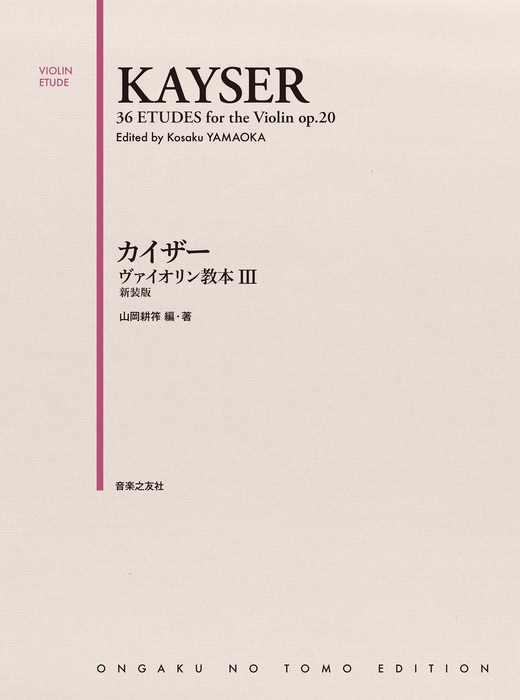 王道教材であるカイザー教本、待望の新装版。退屈と思われがちなカイザーをアンサンブルすることで飽きずにレッスンできる、伴奏譜(第2 ヴァイオリン/ピアノ)に対応している。文章を読みやすく、レイアウトも整理してさらに使いやすくなった。指導者も学習者も必携の一冊。「ヴァイオリン学習者が最初に取り組むエチュード」として学習者必携の王道教材であるカイザー教本。92〜93年にかけて山岡耕筰編纂のもと刊行されたが、その後絶版。しかし多くの要望の声を受け、復刊となった。最大のポイントは、他では手に入らない伴奏譜(第2ヴァイオリン/ピアノ)の存在。第2ヴァイオリンで先生とデュオ、またピアノがあればピアノ伴奏でさらに充実したアンサンブルができる。退屈と思われがちなカイザーをアンサンブルすることで飽きずにレッスンでき、また「ハーモニー感の欠如」が問題となっているヴァイオリン学習者の一助となろう。第3巻では、第7ポジションまで網羅、曲の規模も大きくなり、内容はより豊かで変化に富んだものとなる。