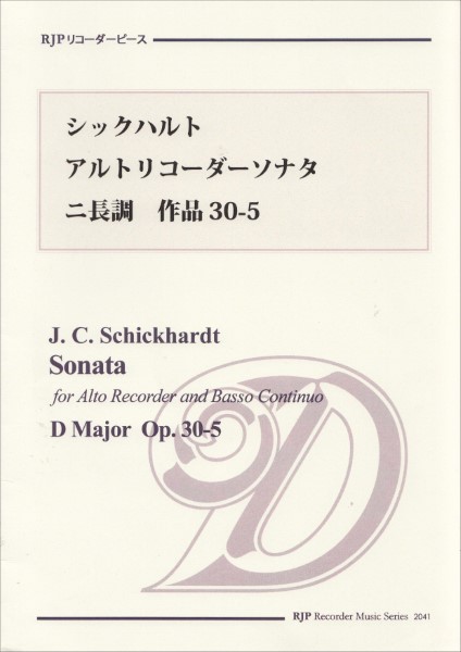 楽譜 シックハルト/アルトリコーダーソナタ ニ長調 作品30-5(模範演奏・マイナスワンCD付)(2041/リコーダーピース)