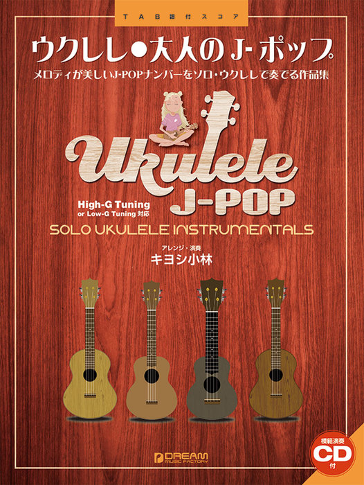 メロディが美しいJ-POPナンバーをソロ・ウクレレで奏でる作品集。永遠に輝き続ける名曲の数々を絶妙なアレンジで収載しました。ウクレレ・マイスター“キヨシ小林"の選曲・アレンジによる、日本を代表するアーティスト達の名曲の数々。大きく見やすいTAB譜と奏法解説付きなので、初級レベルの方でもやさしく楽しく演奏できます。付属の模範演奏CDはBGMとしても堪能できます。Tuning:High-G