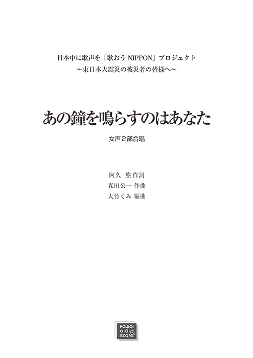 楽譜 【受注生産】 あの鐘を鳴らすのはあなた(女声2部合唱)(3517/納期約2〜4週間)