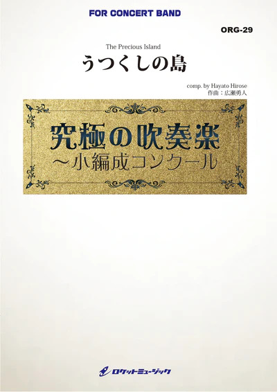 【作曲家からの曲解説】「うつくしの島」は2016年、ロケットミュージック(株)への書き下ろし作品として作曲されました。私が以前、旅行で本土から離れた小さな島を訪れた際、島の圧倒的な美しさに深く感動すると共に、自然の厳しさやそこに住む人々がどの様な想いで日々の生活を過ごしているのかを考えさせられました。そこには見た目の美しさだけではない、現実生活や自然の厳しさがあるのではないかと思い、また一方で、人々の柔らかな表情や言葉の端から、自分たちの土地への思い入れも伝わってきました。曲名の「うつくし」という言葉には、「美しい」という意味の他に「いとおしい、尊い」といった意味が含まれており、島に住む人々の、自分たちの土地への愛着や思い入れを音楽で表現出来ればと思い、曲名に付けさせて頂きました。全国的に小編成・少人数のバンドが増えている中、この作品は最小で8名の演奏者(Cl, A.Sax, Trp, Hr, Trb, Euph, Tub, Perc.:豆譜(キュー)を使用すればこれら以外の8名でも可)で演奏することが出来ます。演奏技術的にも無理がなく、初級〜中級者の多い20〜30人程度のバンドで演奏しても、安定感と広がりのある演奏となるでしょう。打楽器パートは、セッティングを工夫すればTimp.とPerc.1を1名で同時に演奏する事が可能です。(広瀬勇人)