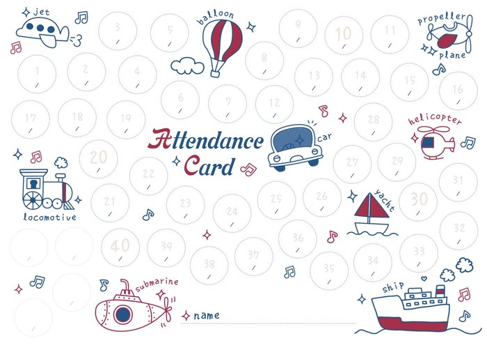 出席カード(PRFG-702)/乗り物と英語(1セット10枚入り)