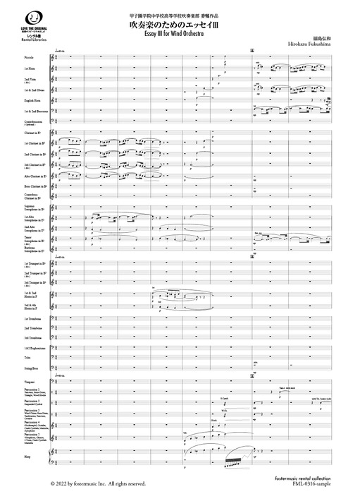 楽譜 福島弘和/吹奏楽のためのエッセイ III(FML-0316FS/302-18389/吹奏楽譜(スコア):大編成/G.4/T:8:40)