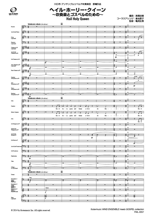 楽譜 ヘイル・ホーリー・クイーン〜吹奏楽とゴスペルのための〜(FMP-0057FS/302-18097/吹奏楽譜(スコア):中編成/G.3+/T:3:10)