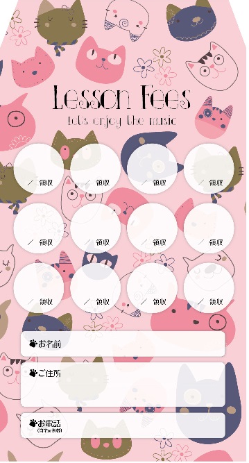 大人気ネコ柄の第2弾。ピンクを基調としたポップなイラストが特長。12cm×20cmの紙製で、お札が透けにくい、少し厚手の素材を採用しました。裏面は、教材・イベントなどの集金用の欄になっています。
