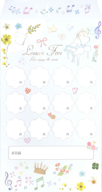 月謝袋(PRFG-616)/ピアノ(ブルー)(1セット10枚入り/外寸:12cm×20cm)
