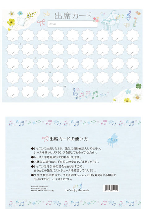 出席カード(PRFG-707)/ピアノ(ブルー)(1セット10枚入り)
