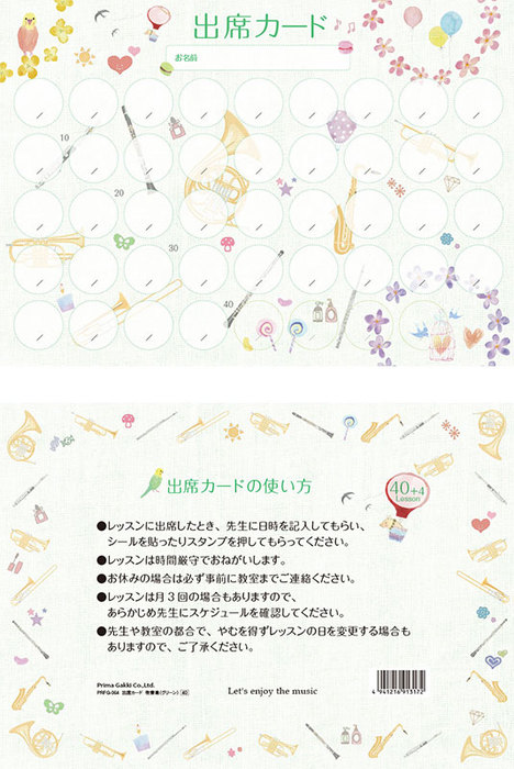 出席カード(PRFG-716)/吹奏楽(グリーン)(1セット10枚入り)
