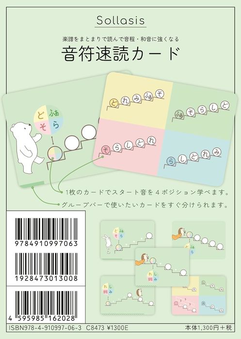 音階・音程の距離感を身につけて、楽譜をまとまりで見れるようにトレーニングするためのカードです。【3度・5度・4度・6度・8度】の音程に対応しています。