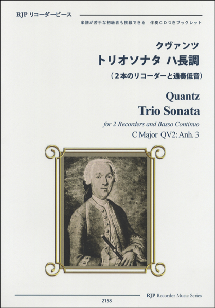 楽譜 クヴァンツ/トリオソナタ ハ長調(模範演奏・マイナスワンCD付)(2158/リコーダーピース/2本のリコーダーと通奏低音)