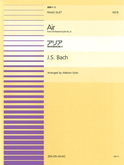 楽譜 ピアノ連弾ピース 15 バッハ=後藤丹(編曲)/管弦楽組曲第3番より「アリア」G線上のアリア(915015/難易度:BB)