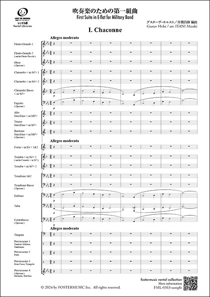楽譜 グスターヴ・ホルスト/吹奏楽のための第一組曲より【吹奏楽スコア】(FML-0363FS/302-19434/吹奏楽譜(スコア):小編成/G.3/T:7分10秒)