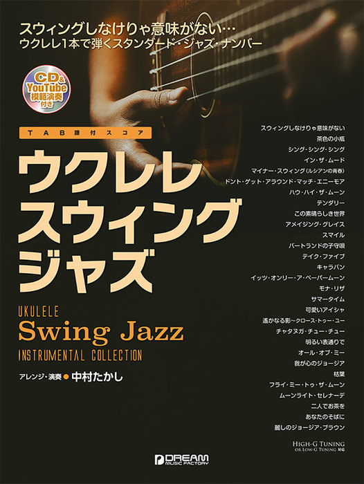 ジャズ・ギター&ウクレレ奏者“中村たかし”による本格的なTAB譜付スタンダード・ジャズ曲集です。初心者から上級者まで、絶妙なアレンジによるプロの演奏を楽しみながらマスター。(全曲High-G & Low-Gチューニング対応)