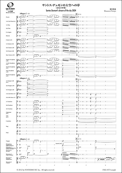 楽譜 樽屋雅徳/サントス・デュモンの大空への夢(2024年版)【吹奏楽スコア】(FML-0373FS/302-19562/吹奏楽譜(スコア):大編成/G.4/T:8:00)