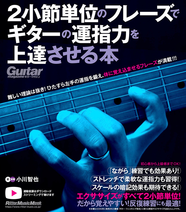 YouTubeチャンネルも人気のギタリスト、小川智也氏によるギターの運指/フィンガリングの教本です。難しい理論・理屈は後回しです。まずはギタリストにとって重要な運指力がひたすらエクササイズを弾くことで身についていきます。この小川氏が提案する2小節単位という短くも効果的な基礎トレ・フレーズは、2小節単位だから覚えやすくて反復練習にも最適。エクササイズは初級・中級・上級の各レベルが用意されているので初心者から上級者までOK。「ひたすら弾く」ことで体に覚え込ませたいので、動画を観たりしながらの「ながら」練習でも効果が期待できます。そしてストレッチのエクササイズも多いので柔軟な運指力も習得できますし、スケー ルを弾いて運指力を高めるエクササイズをずっと弾くことで、いつの間にかスケールを暗記してしまう効果も期待できるというプラス要素もあり! ギタリストにとって良いこと満載の運指力2小節エクササイズ、ぜひ試してみてください。