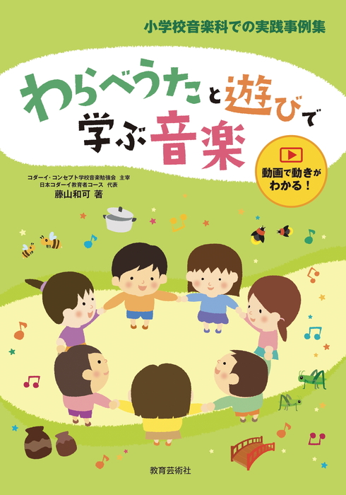 わらべうたを歌い、遊ぶことによって、どのような音楽の基礎的な力を付けることができるのか、どのように遊ぶのかをわかりやすく示しています。さらに二次元コードから、各曲の遊びの動きを動画で見ることができます。