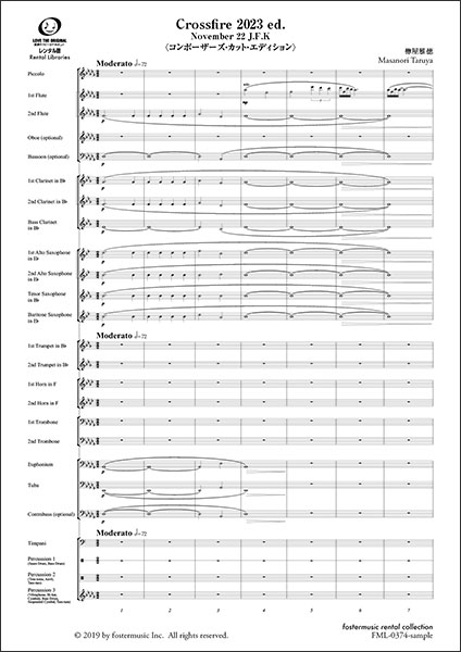 楽譜 樽屋雅徳/Crossfire 2023 ed. - November 22 J.F.K〈コンポーザーズ・カット・エディション〉【吹奏楽スコア】
