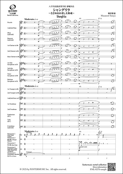 楽譜 樽屋雅徳/シャングリラ〜とどめおかまし大和魂〜【吹奏楽スコア】(FML-0376FS/302-20025/吹奏楽譜(スコア):小編成/G.3/T:7:10)