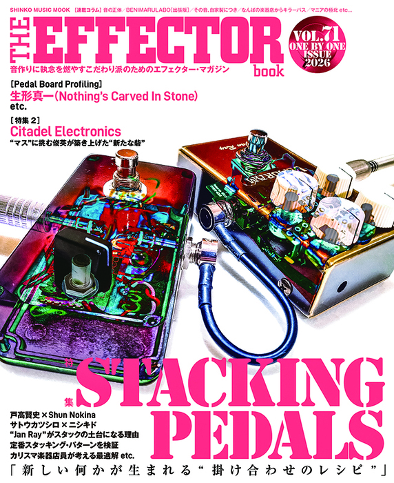 【Pedal Board Profiling】/・生形真一(Nothing's Carved In Stone)/・Nothing/・Just Mustard/【特集1】/STACKING PEDALS/ペダルを重ねれば全く新しい“何か"が生まれるかも?/[Column] セオリーなき状況で考えるペダル・スタッキングの心得/[Interview] 戸高賢史 × Shun Nokina(Phantom EVR )/[Interview] 村田善行(Guitar Shop Hoochie's)/[Interview] 手塚大哉(VEMURAM)/[Analysis] スタッキングがどれほど有効なのかを実機を使って検証!/[Interview] サトウカツシロ(BREIMEN)× ニシキド(Guitar Shop Hoochie's)/[Analysis] 現行最新“2 in 1ドライヴ・ペダル"試奏分析/[Interview] 小林 良(IKEBE SHIBUYA World Pedal Park)/[Instruction] 理論派ペダル・ビルダ…