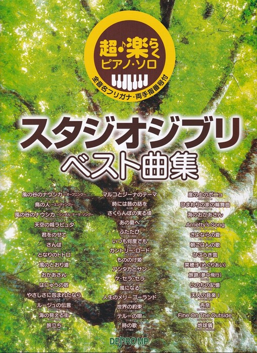 スタジオジブリ作品の名曲を、超・楽らく弾けるピアノ・ソロにアレンジしました。音名フリガナと歌詞付きの楽譜なので、譜読みが苦手なかたも安心です。