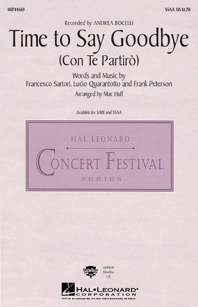 原題 Andrea Bocelli - Time to Say Goodbye(Con te partiro)(S,S,A,A)/Arr. Huff