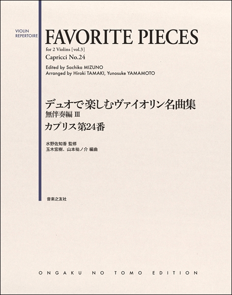 水野佐知香監修のもと、玉木宏樹・山本祐ノ介の粋なアレンジで刊行された「デュオで楽しむヴァイオリン」シリーズの再版。無伴奏編とピアノ伴奏付篇に分け、さらに使い勝手のよい楽譜となっている。