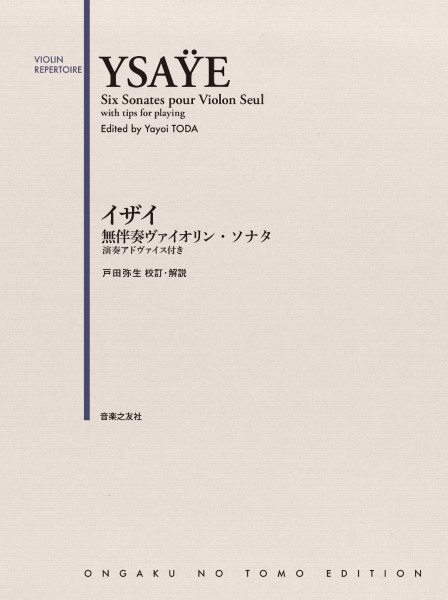 偉大なヴァイオリニストにして作曲家でもあったイザイによる名作。ミルシテイン、ギンゴールド、プリムローズなど名だたる演奏家を育てたイザイ自らが書いたヴィルトゥオーゾ作品で、ヴァイオリニストにとって永遠の挑戦曲である。全6曲からなり、シゲティ、ティボー、エネスク、クライスラーなど、それぞれが偉大なヴァイオリニストに捧げられている。各曲が非常に個性豊かで、コンクールの課題曲としてもよくとりあげられている。校訂・運指・解説はエリーザベト王妃国際音楽コンクールで優勝を果たし、その後審査員も務める戸田弥生。すさまじい熱量の彼女の演奏の秘密を垣間見ることのできる、学習者必見の版である。