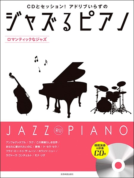 付属のCDには、ピアノ、ベース、ドラムから成る本格的なジャズ・ピアノ・トリオによる『模範演奏』と、そこからピアノだけを除いた『伴奏』が収録されています。